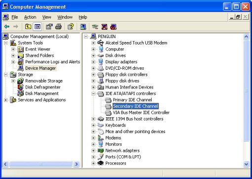 2. Select Device Manager in the left hand pane, expand IDE ATA/ATAPI controllers and double click the appropriate IDE controller, in the example Secondary IDE Channel.