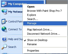 1. Select Start / Right Click 'My Computer' / Select Manage