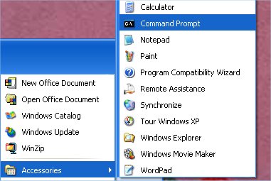 - From the task bar select Start / All Programs / Accessories / Command Prompt.