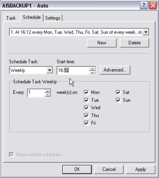 - Launch Microsoft Task Scheduler, This can be done via Control Panel on Windows XP or via Start / Programs / Accessories / System Tools / Scheduled Tasks or via the AISBackup Option Tools / Show MS Task Scheduler.