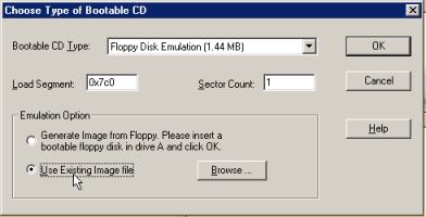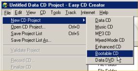 - Select the menu option File / New CD Layout / Bootable CD. The following prompt will be displayed: