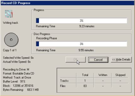 You may now want to check that you can boot from this CD (if it was created bootable), and / or the files will be accessible from DOS. To see if your PC can be booted from a CD see your mother board instructions, alternatively, check the CMOS settings:- While re-booting enter CMOS settings (on some PC's press the DEL key when prompted)