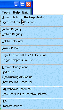 AISBackup can easily load a Backup Contents File created on another PC, or from the current PC where the backup job no longer exists. This is done by selecting the menu option Tools then Open Job From Backup Media.