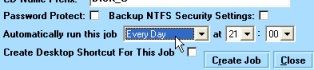 Optional: A MS Task Schedule for the job may be set-up by an Automatically run this job option. It is also possible to set-up a desktop shortcut for the job to enable the job to be run via a double click rather than the man AISBackup interface, this is done by selecting Create Desktop Shortcut For This Job.