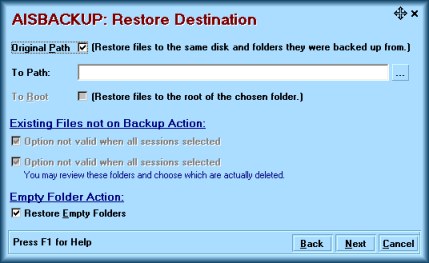 This option restores the files to the specified path name. The restored files will maintain their folder structure.