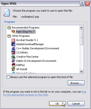 Choose Open to open the file with its registered program, if no registered program can be found the Open With option will be used instead.
