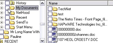 If the tree node is collapsed as shown by the 'My Documents' folder below, clicking the